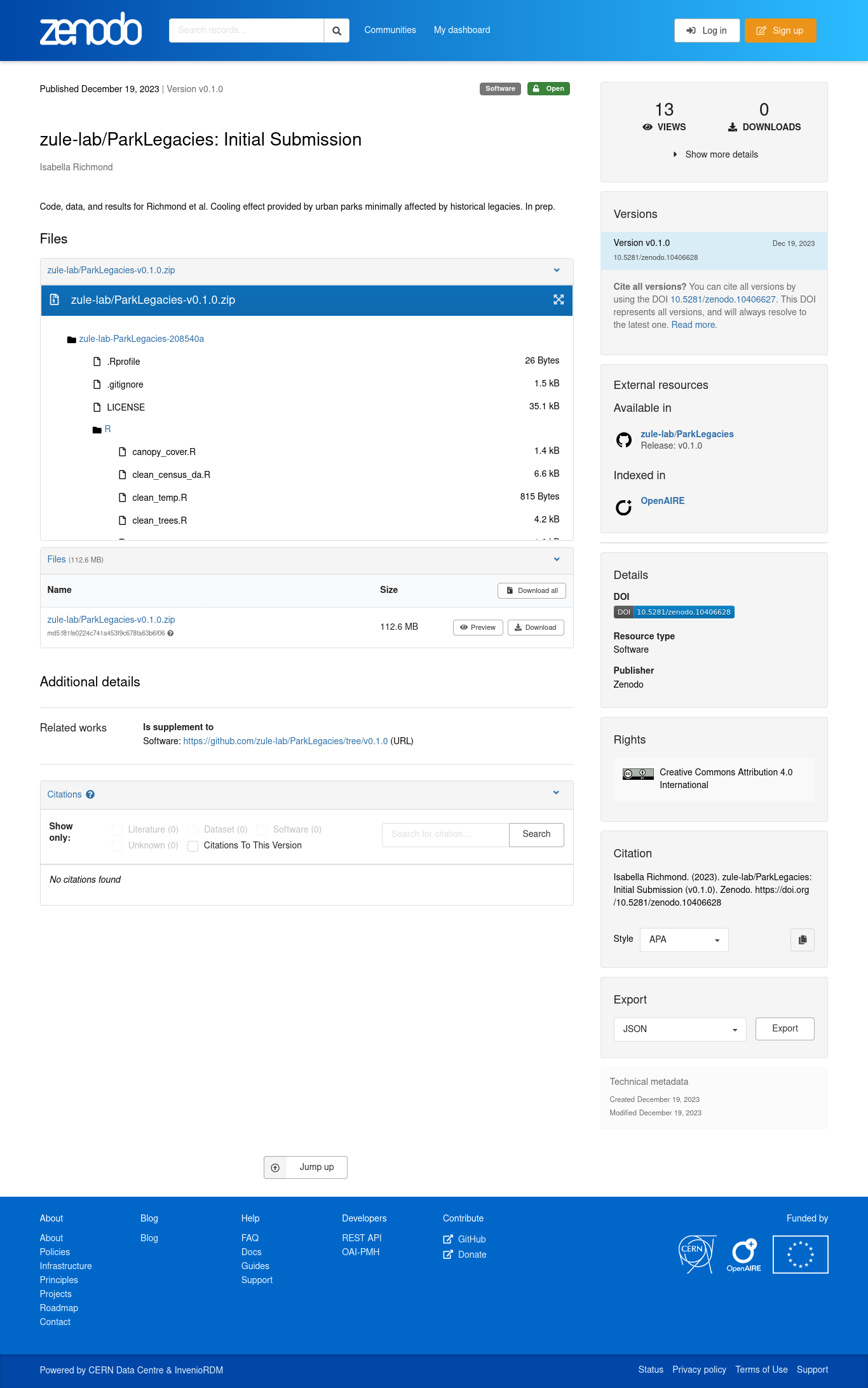 ZULE’s GitHub has lots of repositories (including examples) if you are looking for inspiration for folder organization, ReadMe documentation, metadata, etc.